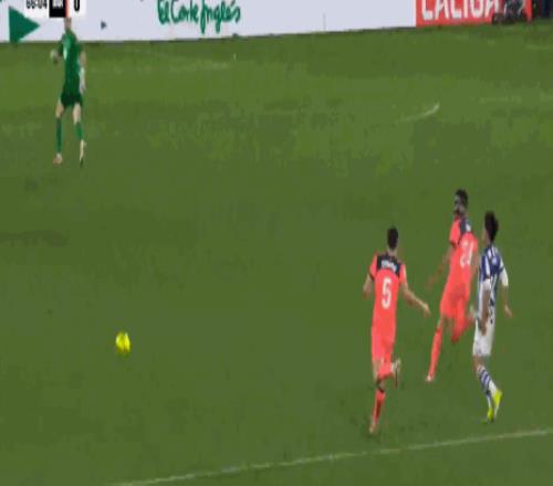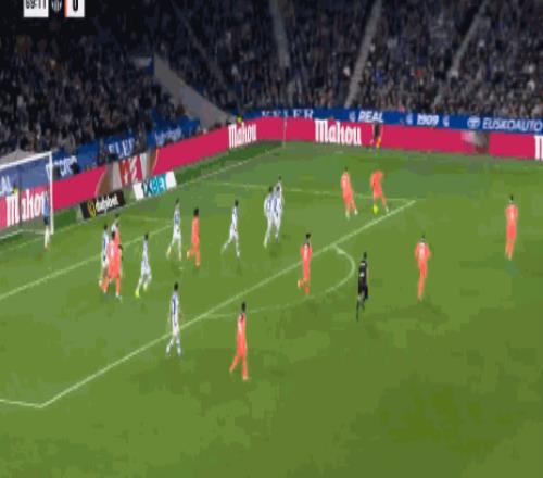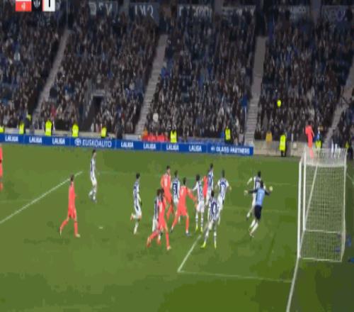 第32分钟,精彩绝伦,奥亚萨瓦尔凌空抽射破门,巴萨0-1