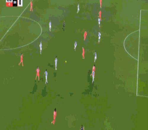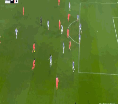 第9分钟,费尔明破门,但是因奥尔莫先前抢断犯规被判无效