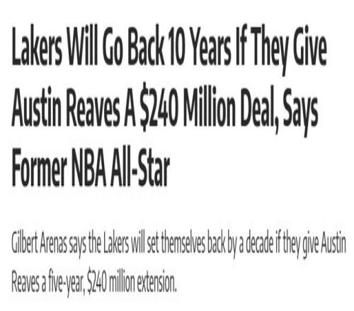 “也就是说,要是哪支球队真的铁了心想得到他,就必须付出远超筹码价值的代价,这正是我们(湖人)所期待的。因为一旦你(湖人)真的给他开出2.4亿美元的合同,球队很可能会因此倒退整整十年。”